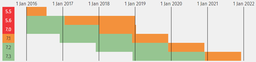 Also keep in mind, that every PHP major versions is fully supported only 2 years. For example PHP 7.1 is at the end of its life and the security support will end in 5 months.