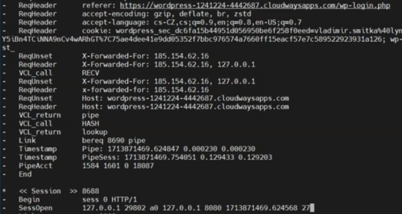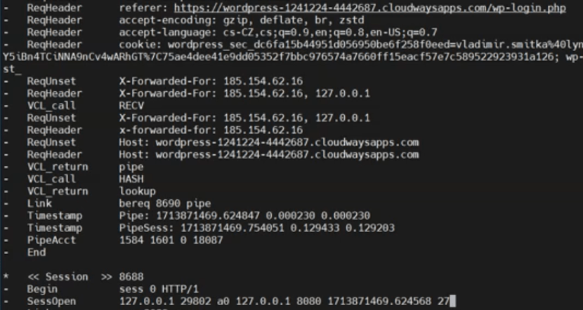 Cloudways uses the Varnish tool for caching traffic, through which all website traffic on the server flows. Varnish provides a utility called varnishlog that allows monitoring what’s happening in it.